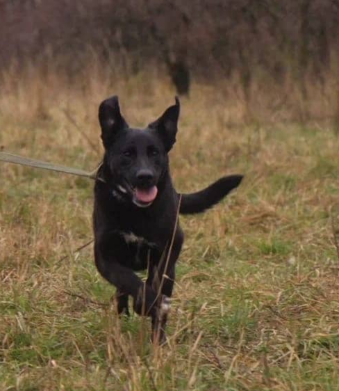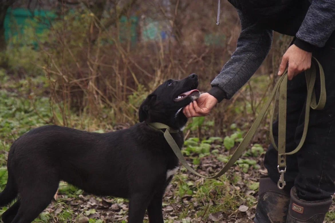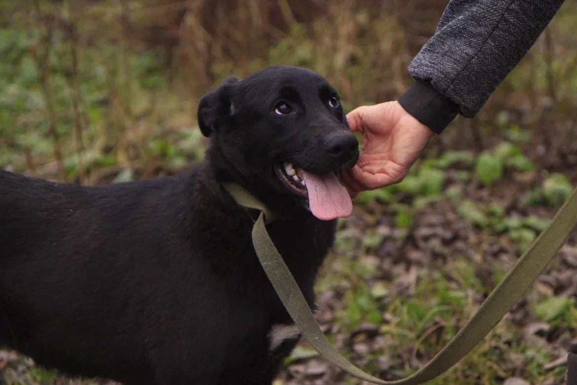 Ходит на поводке , радуется всем людям . Обожает побегать, поиграть, поваляться в травке .