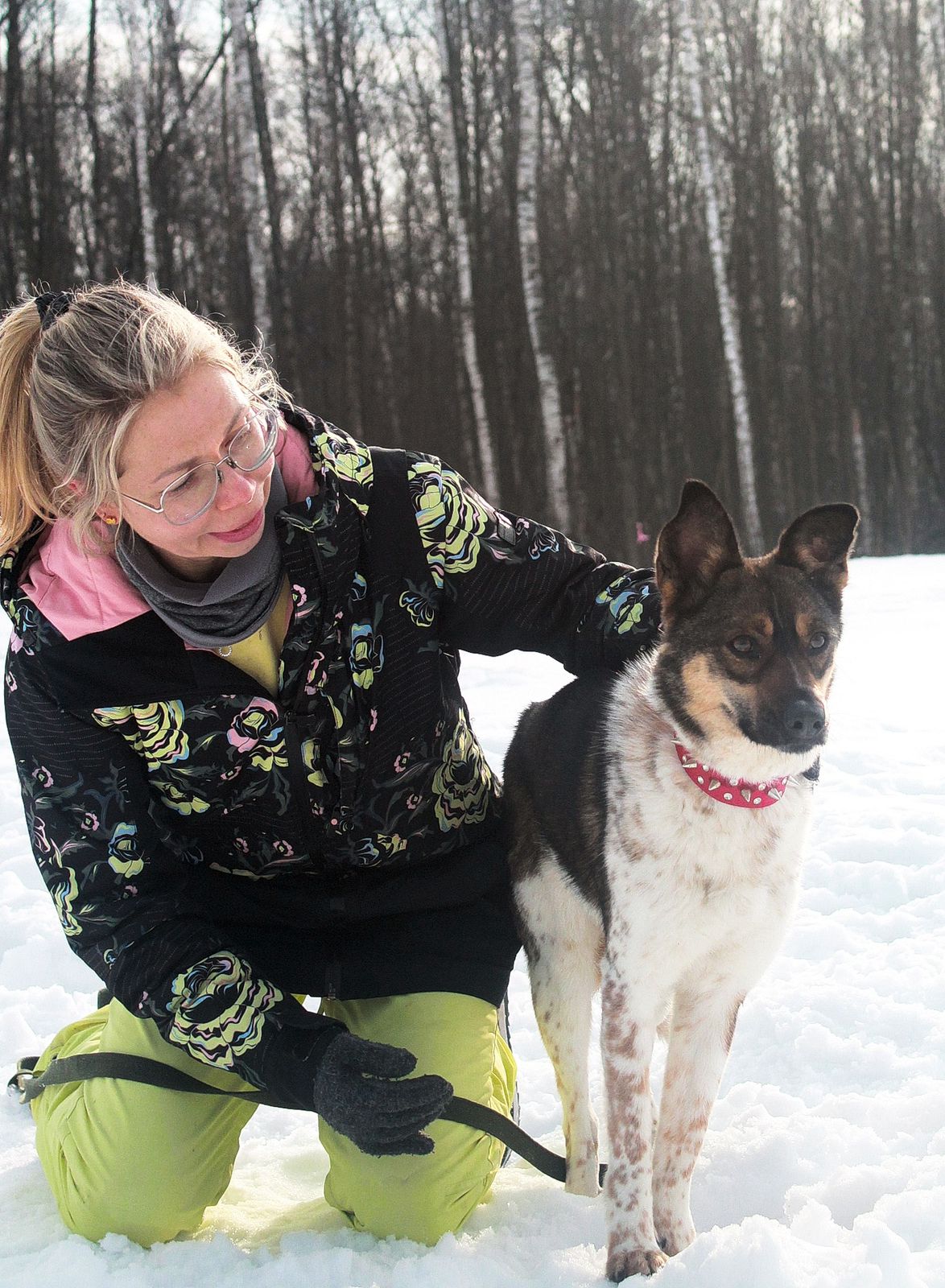 Но при этом с удовольствием бежит на прогулку. Уходя в лесочек , там где потише она успокаивается и с удовольствием познает мир вокруг рядом с человеком .