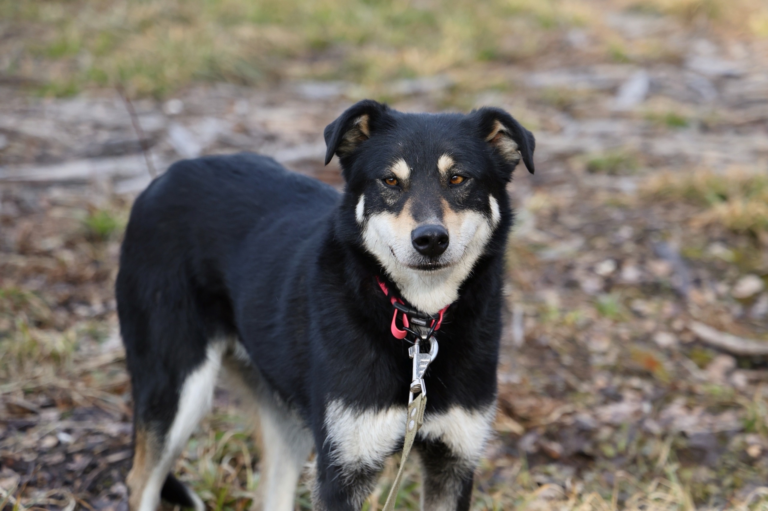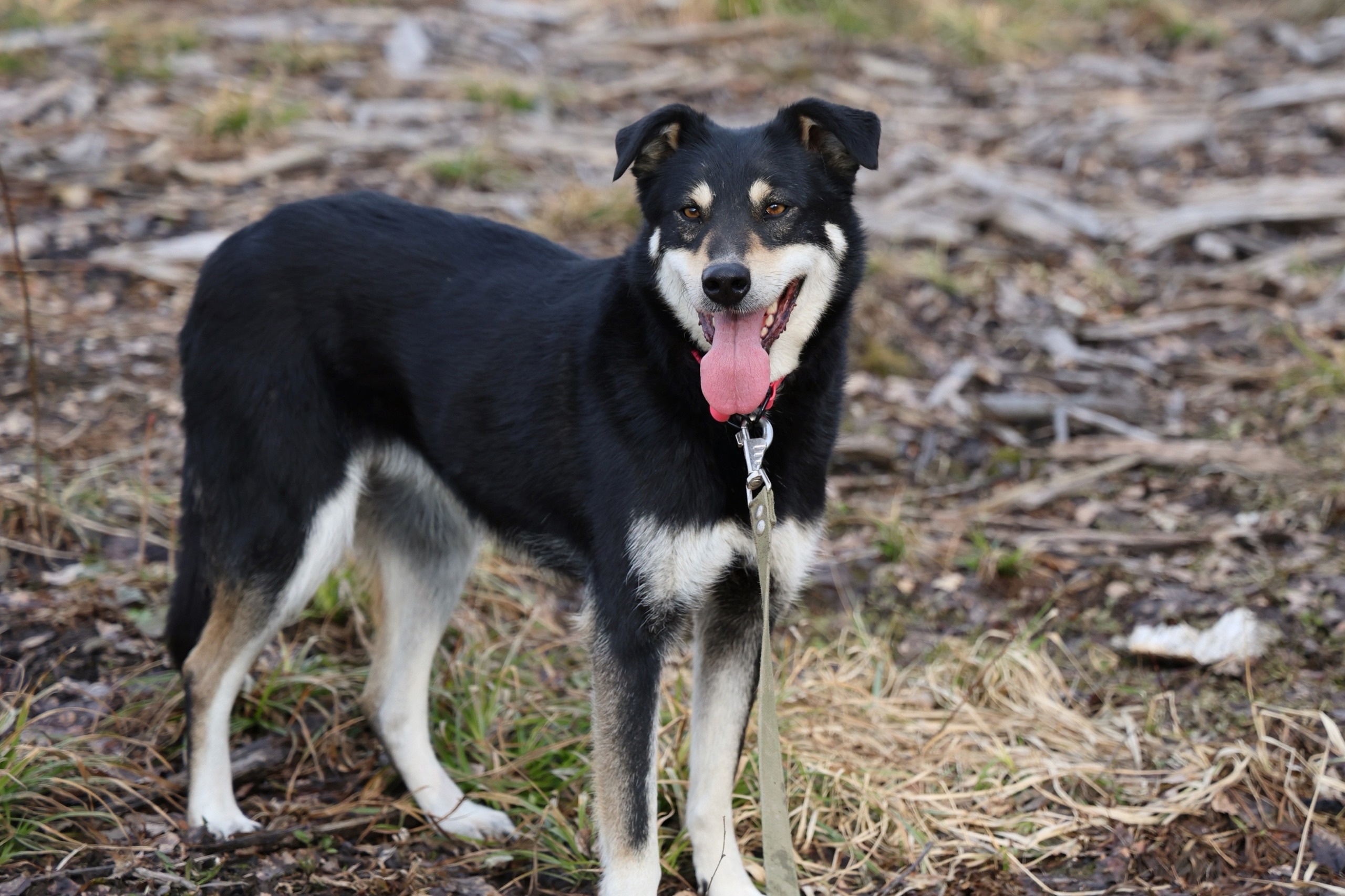 Недавно Жулю научили ходить на поводке.И вот она с нетерпением ждёт прогулок, выходит из вольера и слушается человека,т.к.очень хочет нравиться