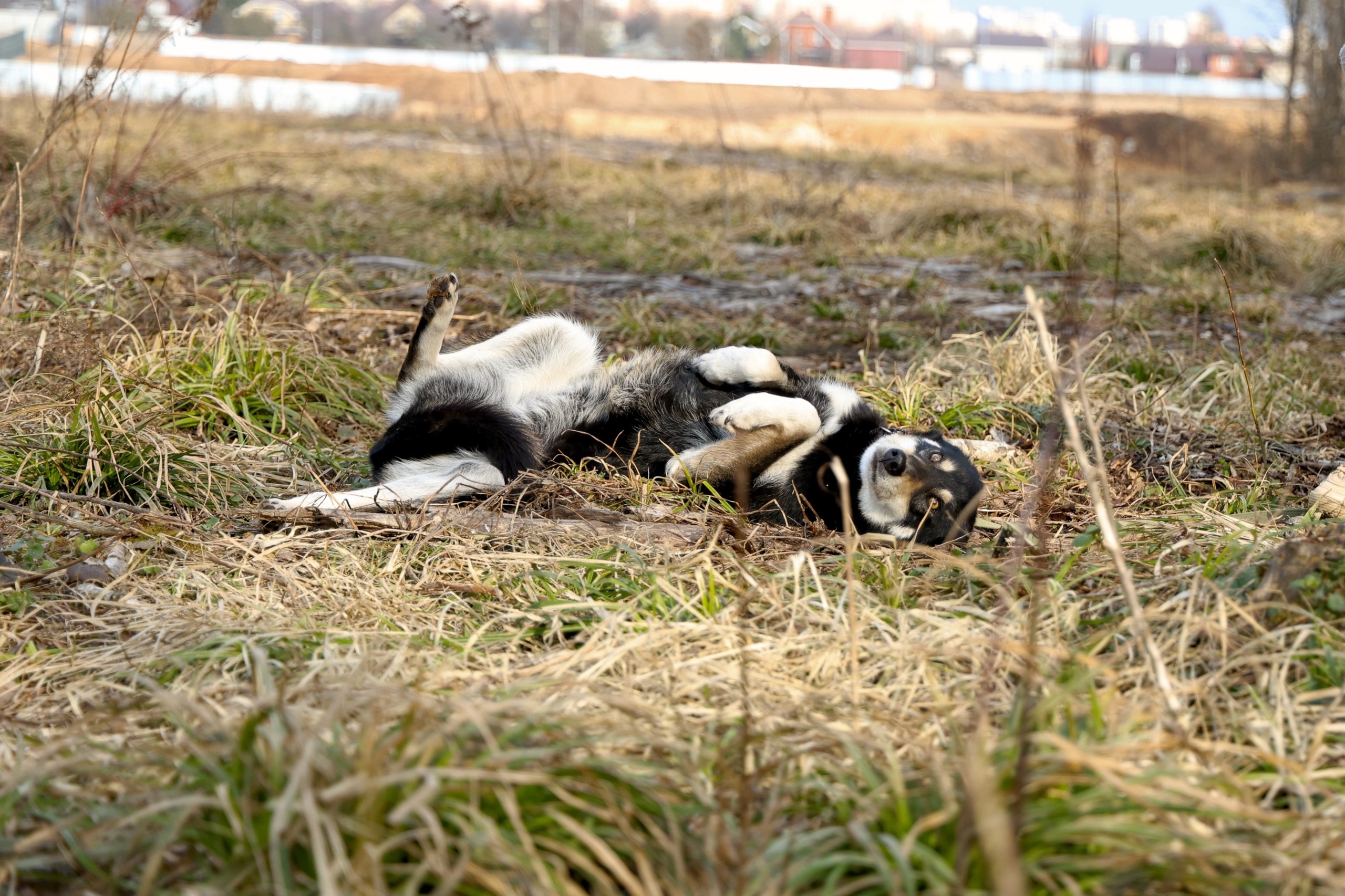 На прогулках любит бегать,валяться в траве,обниматься.