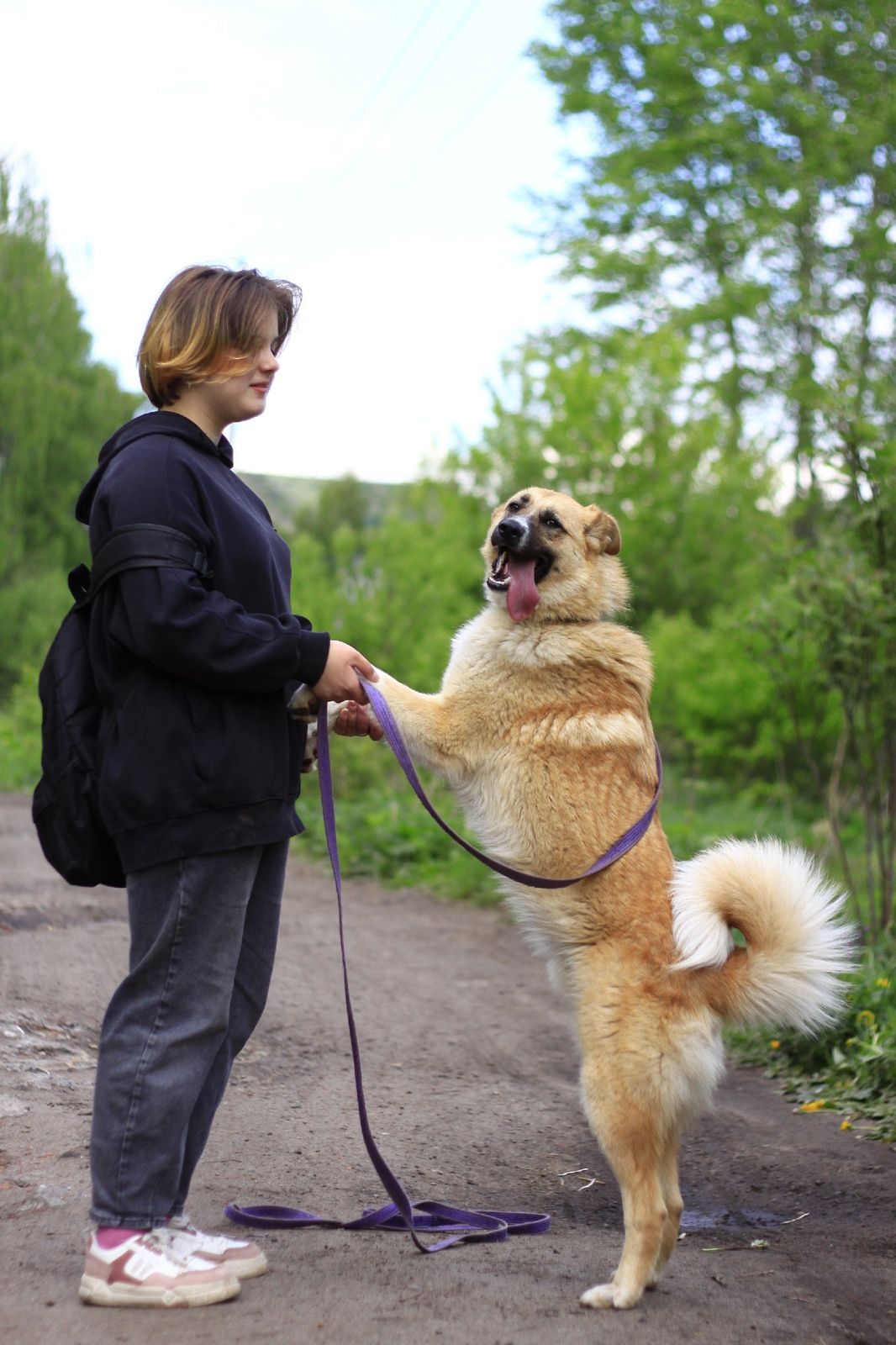 РАСТИ -выше колена,средней пушистости. дружелюбен к собратьям.с кошками сдержан.